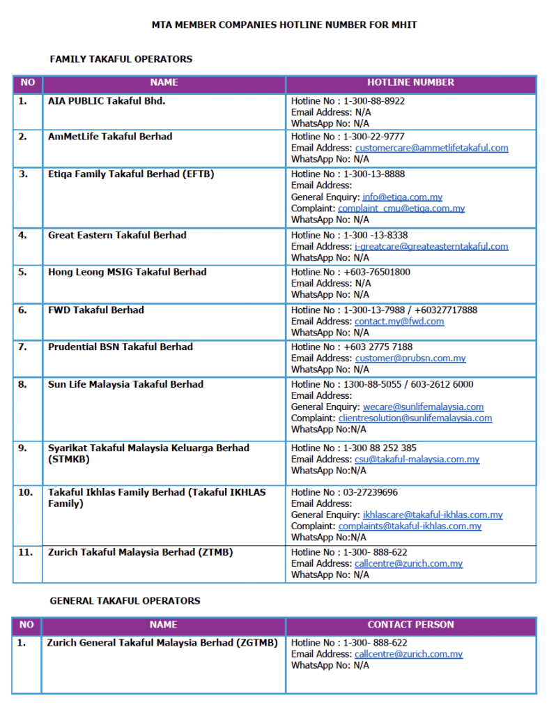 For further information, policyholders are encouraged to contact their respective insurers or takaful operators. Details will be posted in the Association’s website